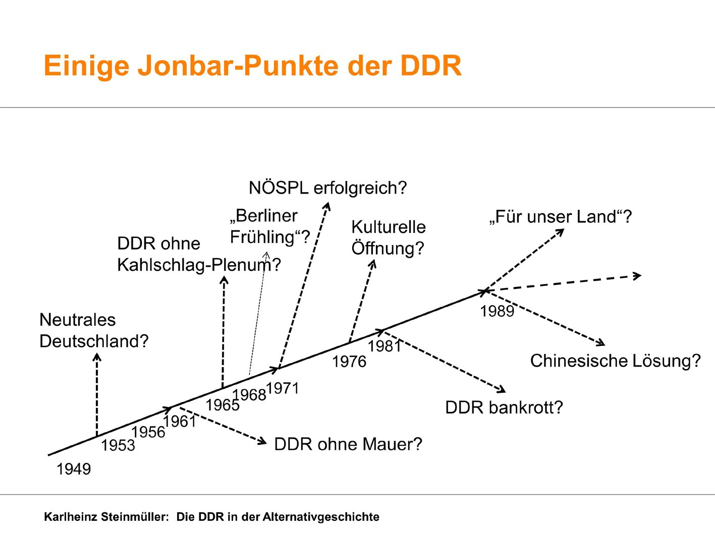 At the science fiction convention PentaCon, held at Dresden on November 1 to 3, I could give a presentation on alternative history novels about East Germany. Funnily, no writer speculated about "Jonbar points" different to the real one of 1989.